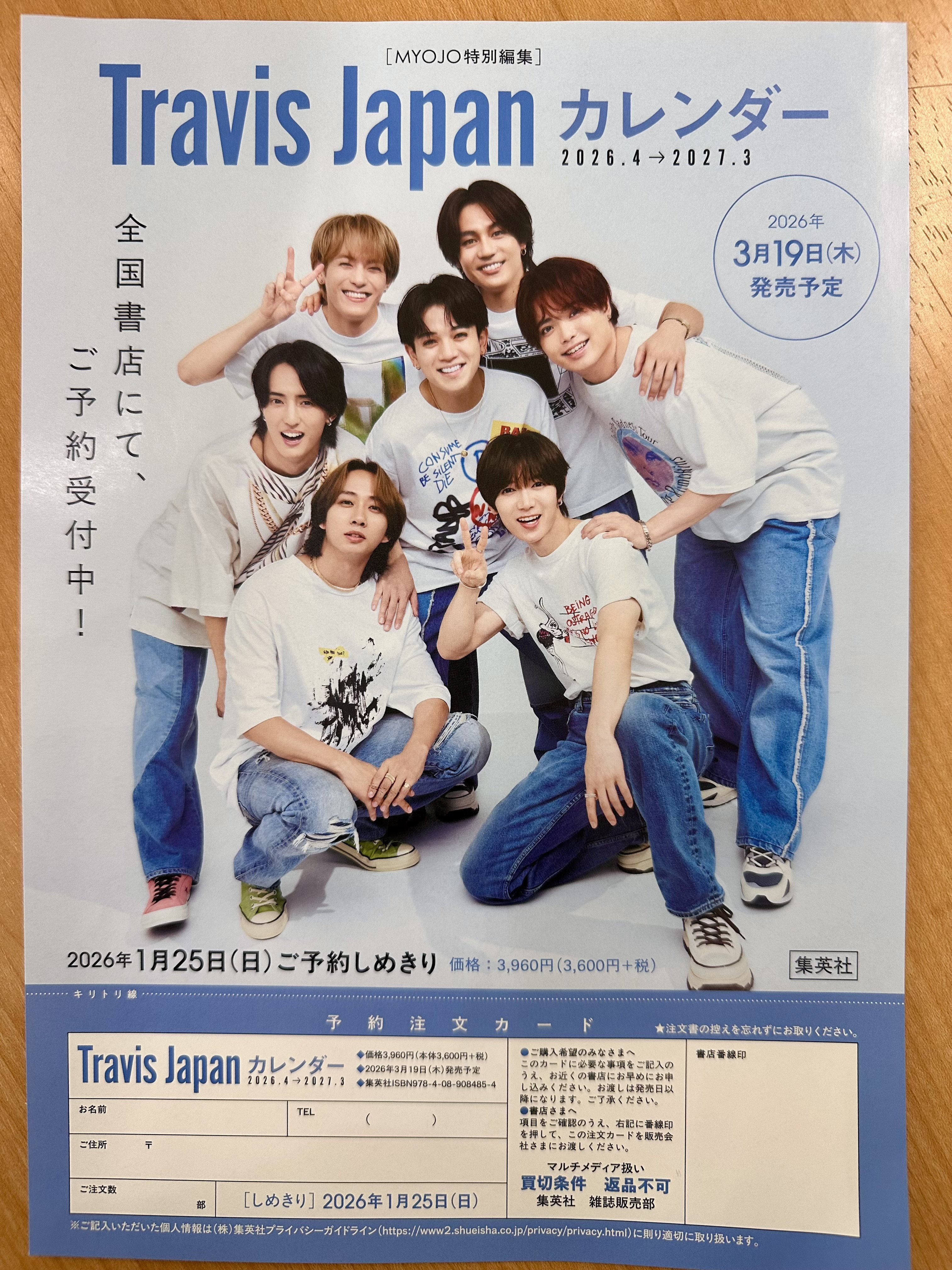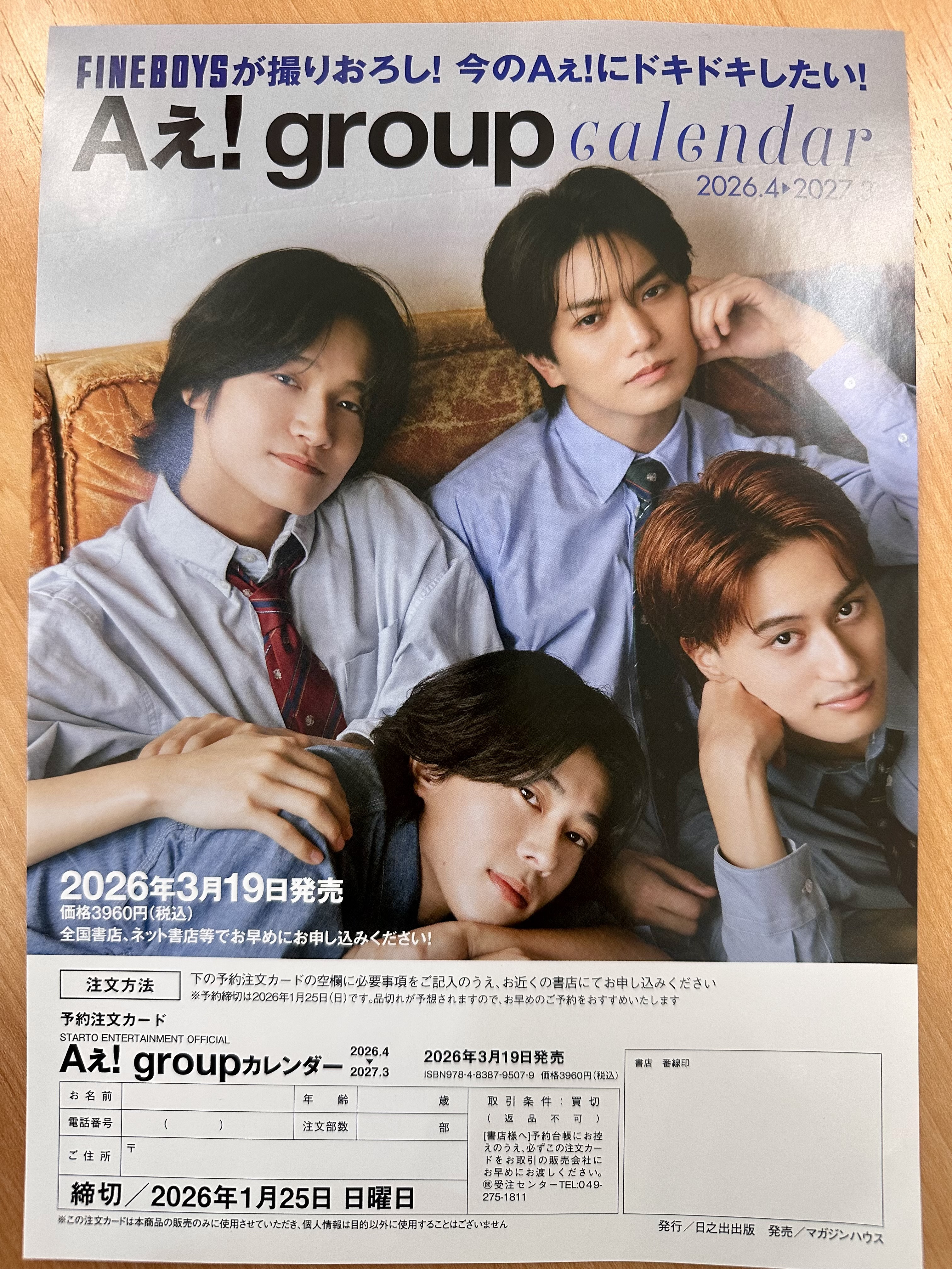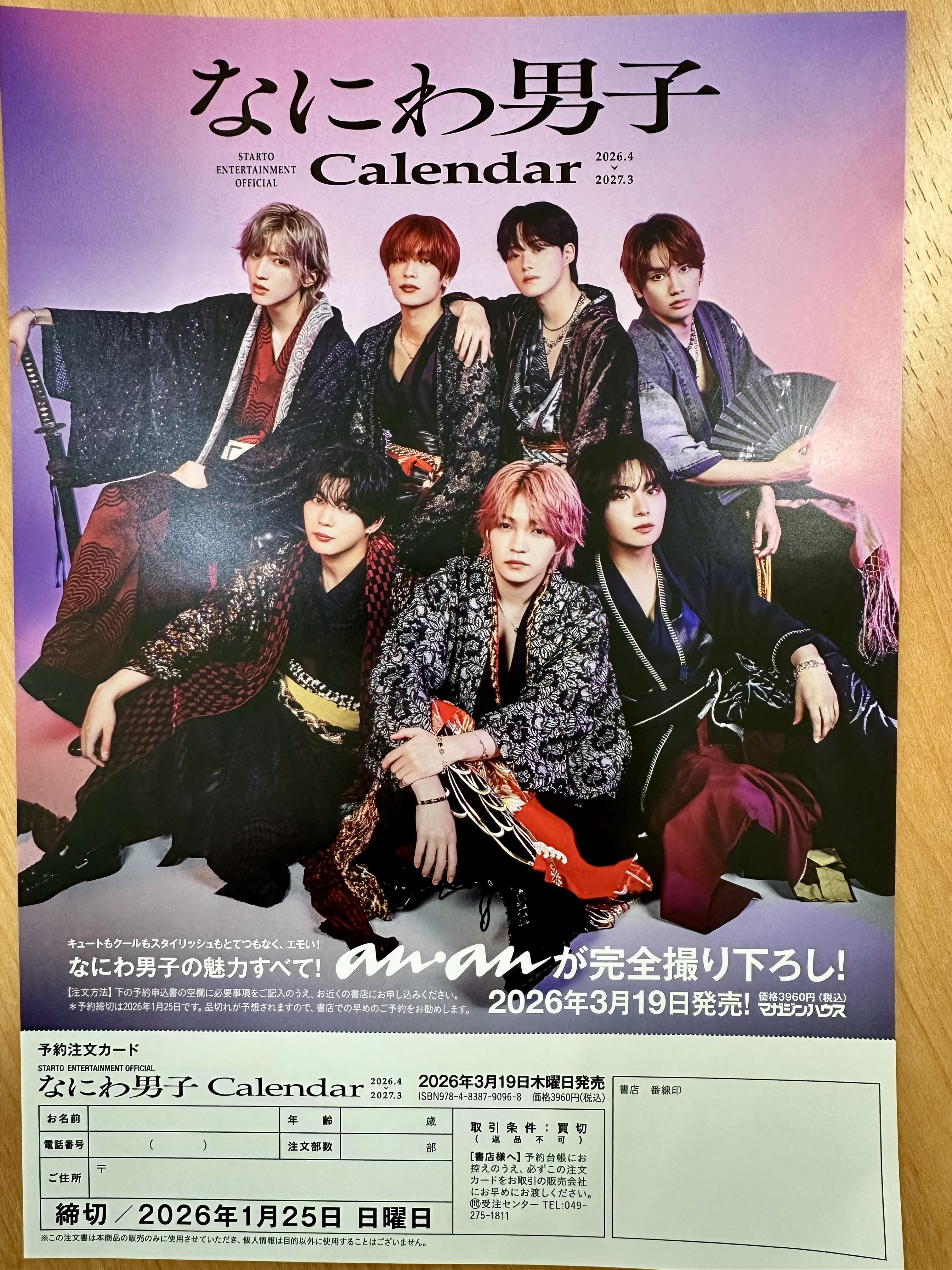 【予約】 2026年度版「なにわ男子」「Travis Japan」「Aぇ!group」カレンダー予約のご案内 ~1/23まで