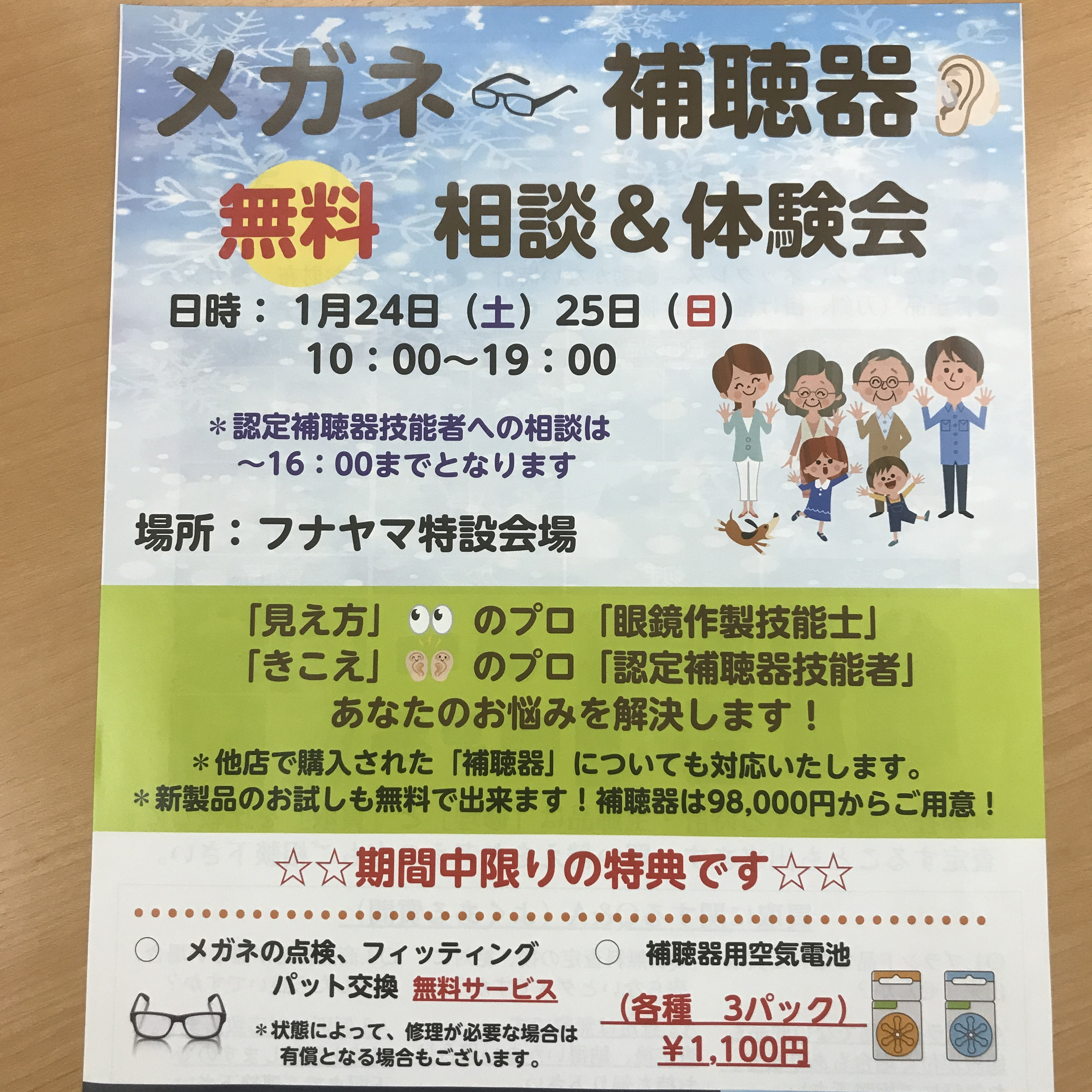 2026年1月24日(土)25日(日)に【メガネ 補聴器 無料相談&体験会】を開催いたします。